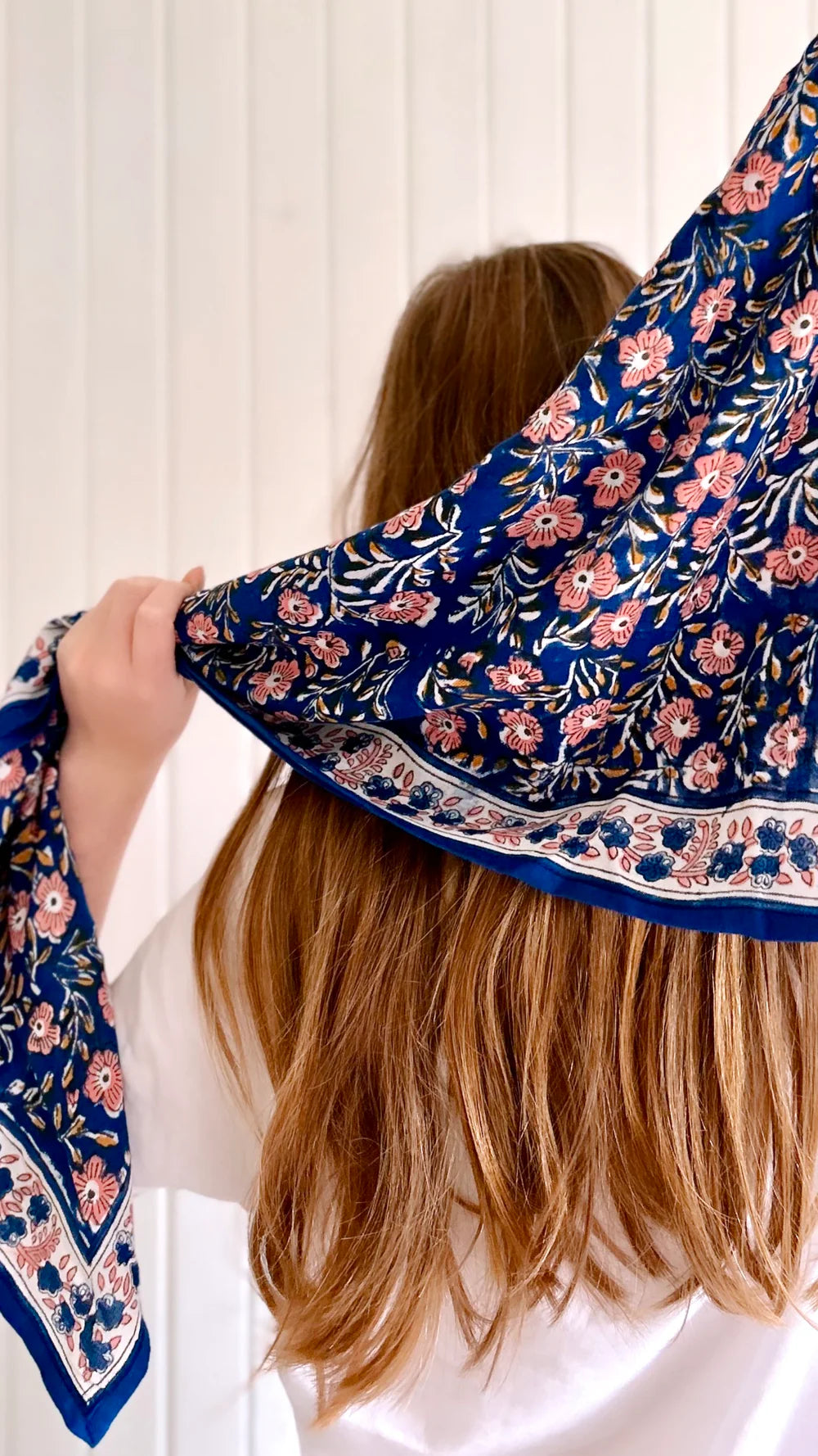 Nos foulards sont imprimés à la main à Jaipur avec la technique traditionnelle du block print. Chaque pièce est unique, avec ses petites irrégularités qui font tout son charme. Comme chaque collection est réalisée en série limitée, les couleurs varient d’une production à l’autre : votre duo est vraiment exclusif !