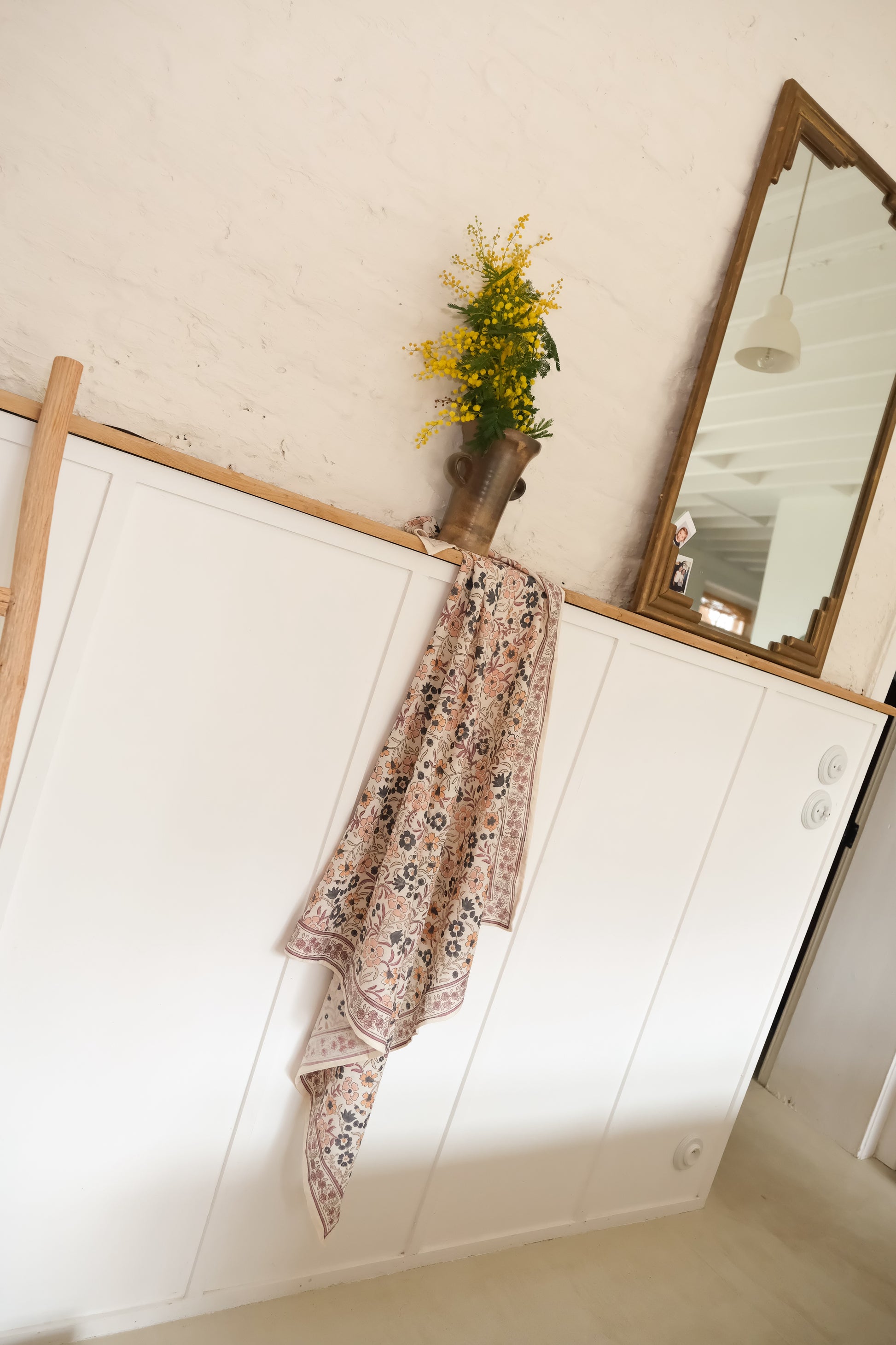 Imprimés à la main à Jaipur avec la technique traditionnelle du block print, chaque foulard se distingue par ses nuances uniques obtenues grâce à des pigments naturels. De petites irrégularités peuvent apparaître, signe de leur fabrication artisanale et de leur authenticité.