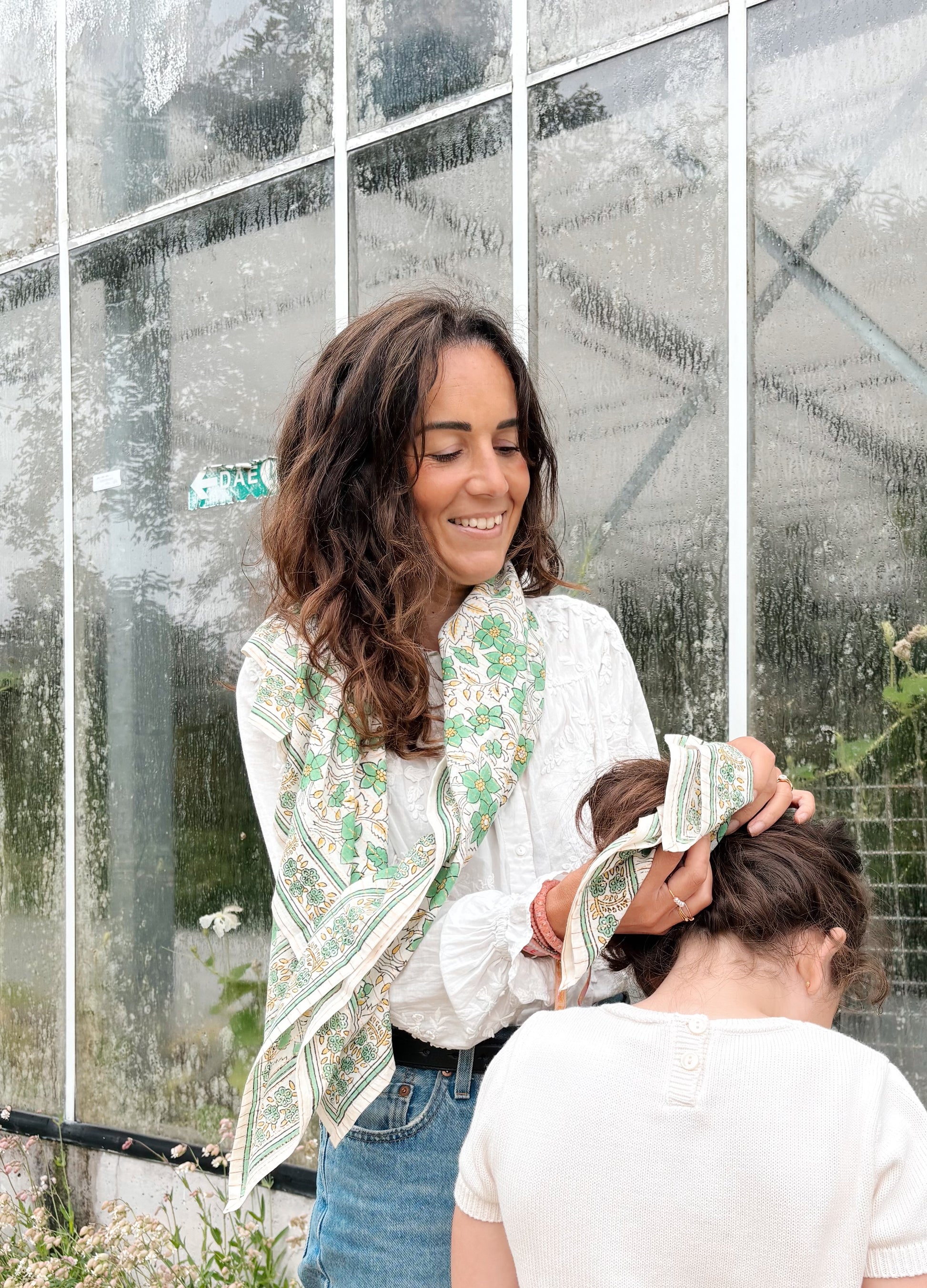 Imprimés à la main à Jaipur avec la technique traditionnelle du block print, chaque foulard se distingue par ses nuances uniques obtenues grâce à des pigments naturels. De petites irrégularités peuvent apparaître, signe de leur fabrication artisanale et de leur authenticité.