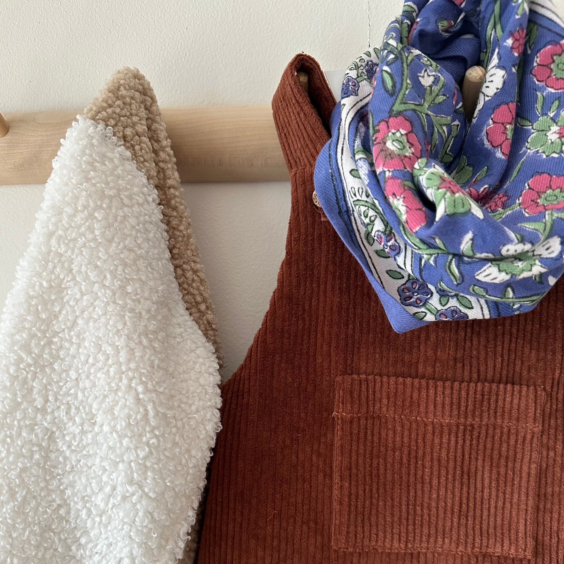 Pensé pour les enfants (50x50 cm), ce foulard est l’accessoire parfait pour ajouter une touche de style tout en douceur. Léger et pratique, il se porte autour du cou, dans les cheveux ou même accroché à un petit sac.