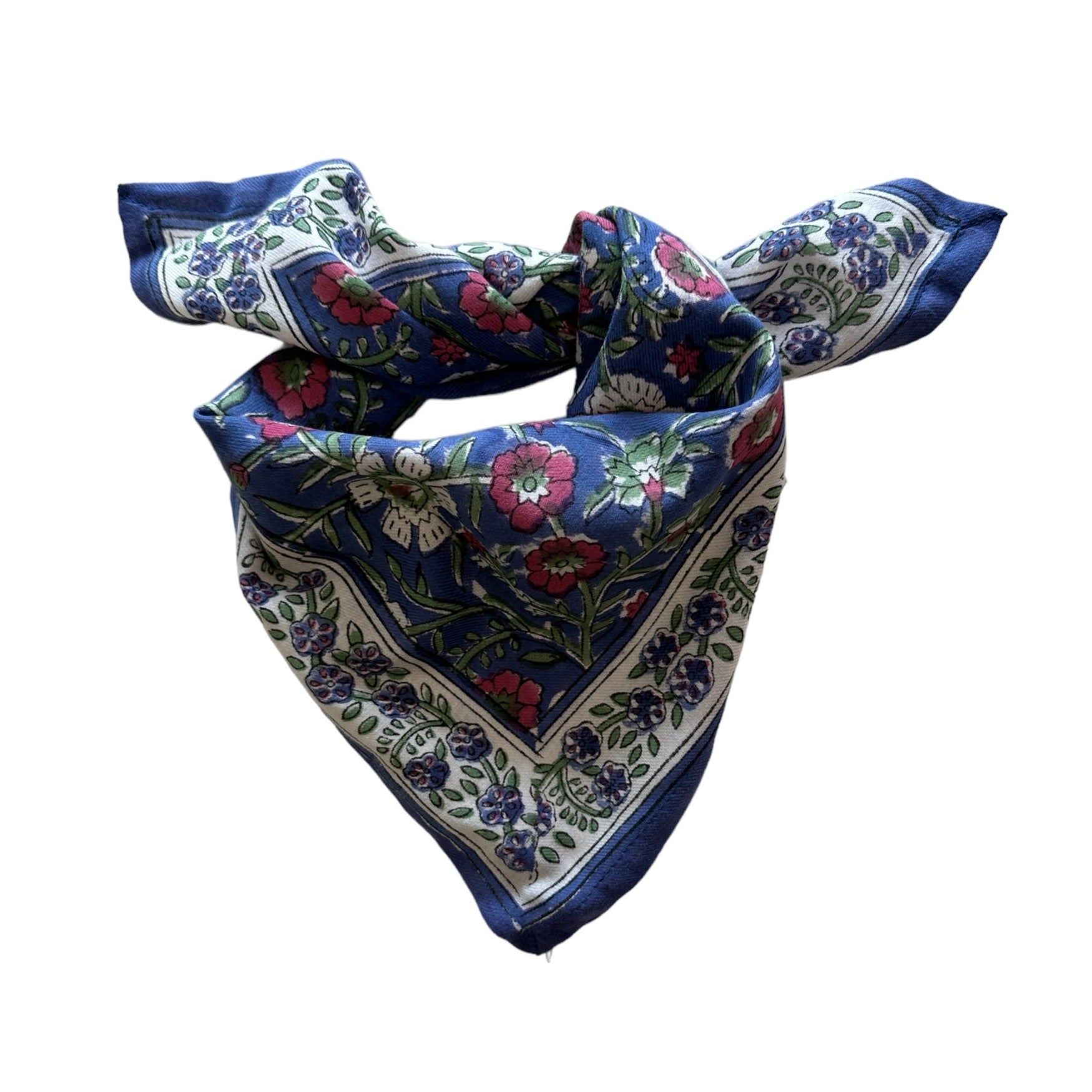 Chaque foulard est imprimé artisanalement à Jaipur avec la technique traditionnelle du block print. Les motifs sont appliqués à la main, ce qui rend chaque pièce unique. De petites variations de couleurs peuvent apparaître, et c’est ce qui fait tout leur charme.