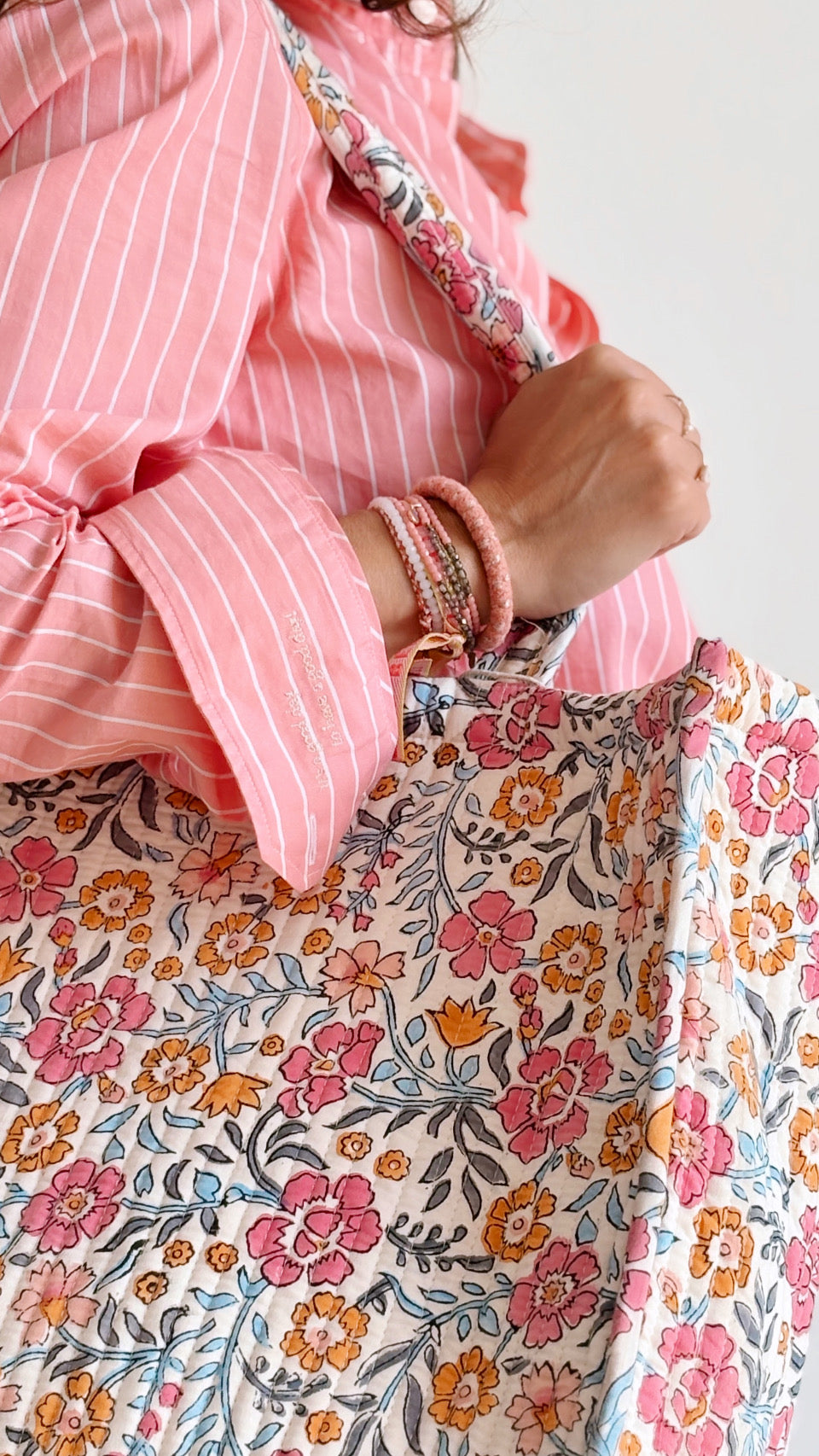 Confectionné à la main à Jaipur avec la technique traditionnelle du block print, chaque cabas est unique.