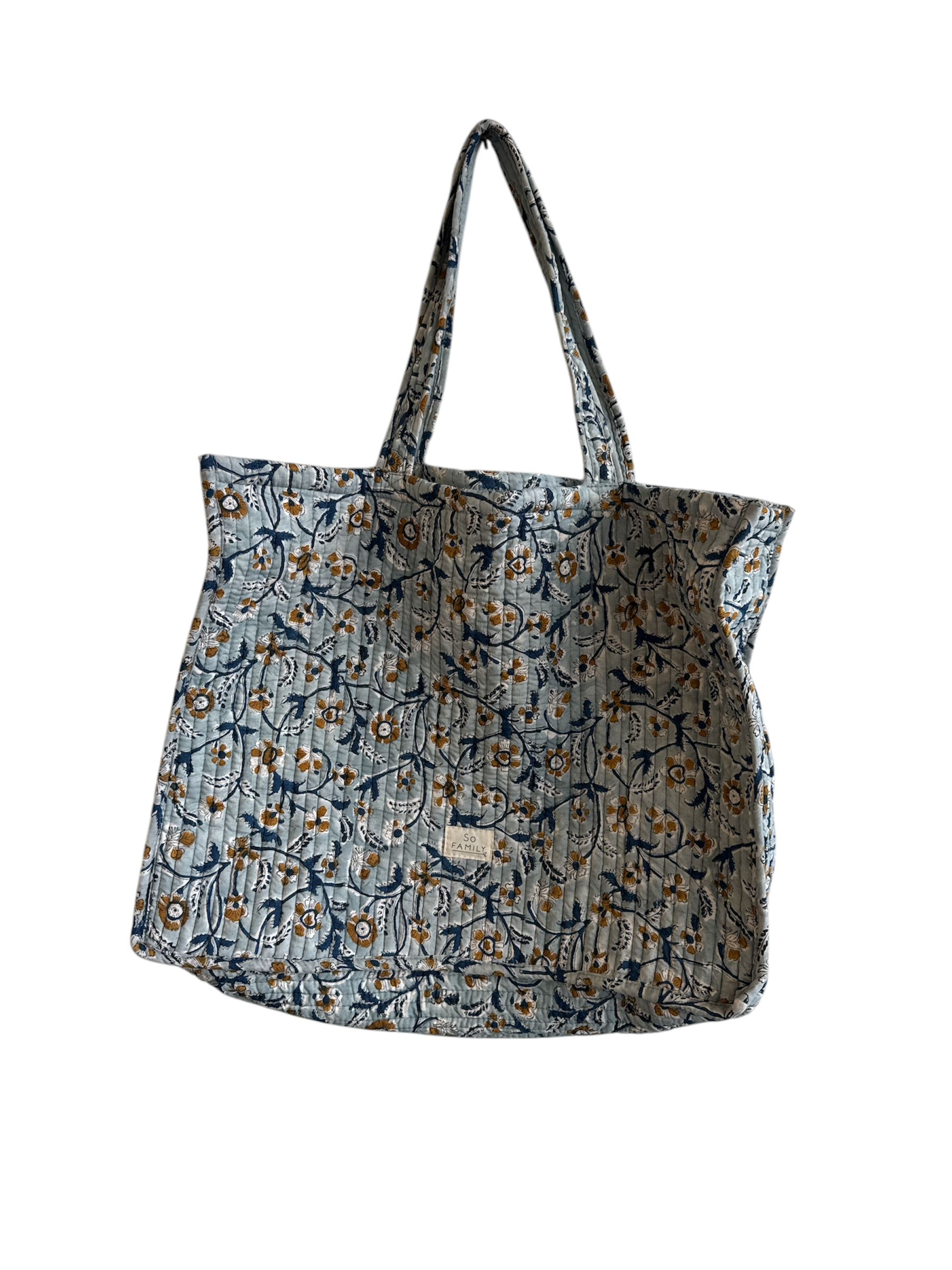 Confectionné à la main à Jaipur avec la technique traditionnelle du block print, chaque cabas est unique.
