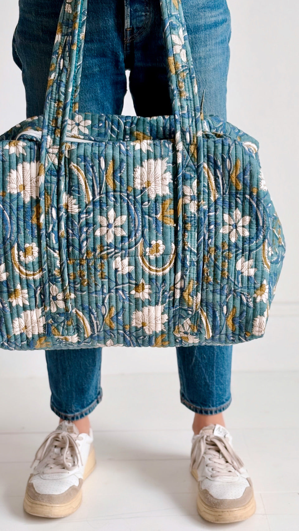 Confectionné à la main à Jaipur avec la technique traditionnelle du block print, chaque sac est unique.