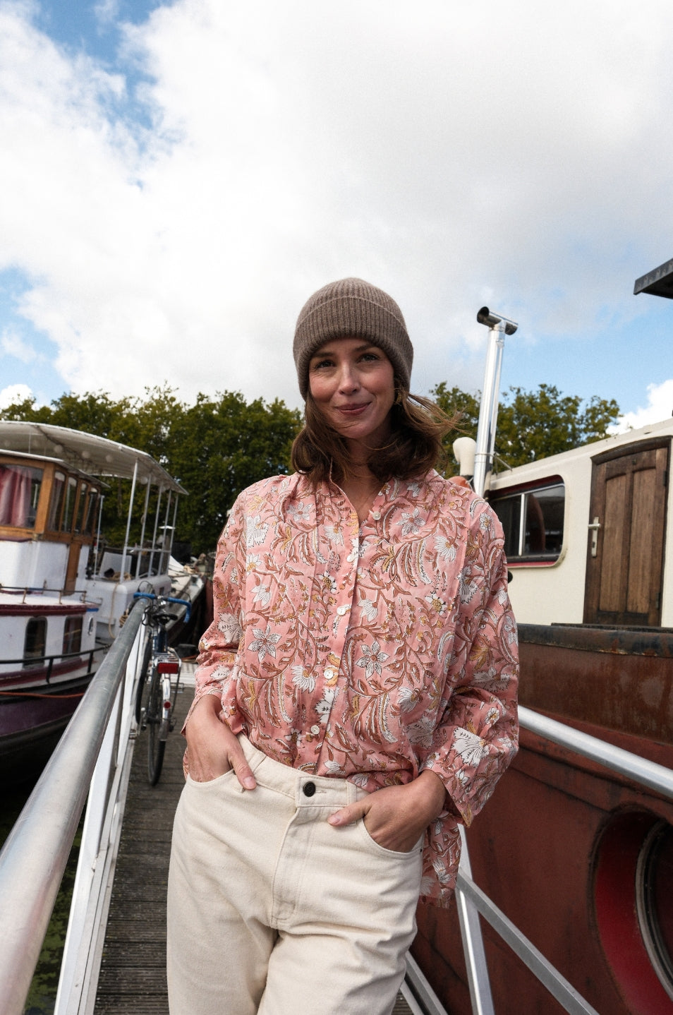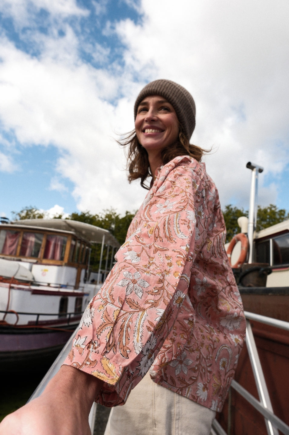 Nos créations prennent ensuite vie dans nos ateliers partenaires en Inde, certifiés et reconnus pour leur savoir-faire ancestral. Là-bas, des artisans perpétuent l’art du blockprint, une technique traditionnelle d’impression au tampon de bois sculpté à la main. Chaque geste, précis et patient, confère au tissu un caractère singulier, empreint d’authenticité et d’irrégularités précieuses qui rendent chaque pièce unique.