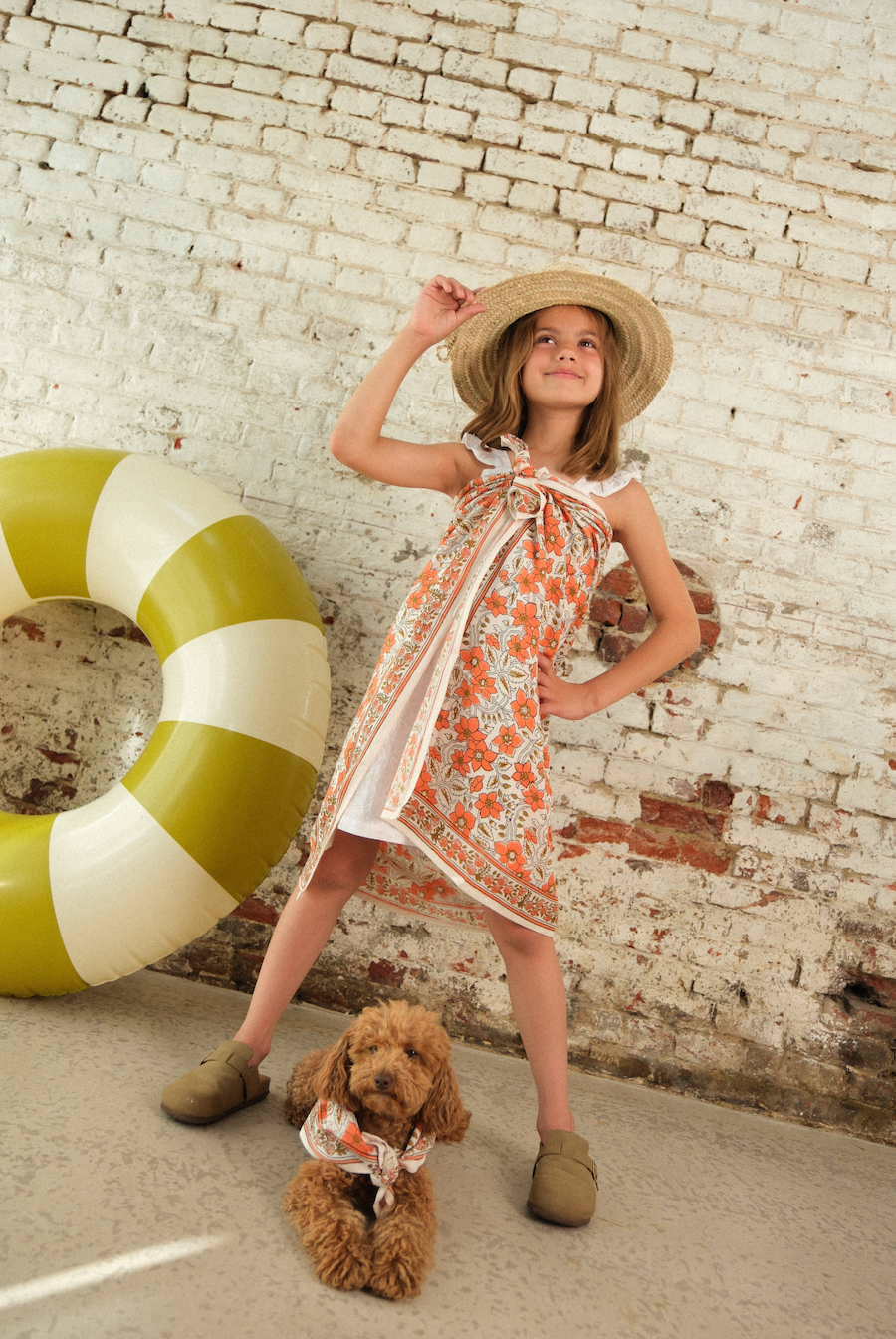 Un foulard pour maman (100x100 cm) et un foulard pour enfant (50x50 cm) : l’accessoire idéal pour créer des looks matchy-matchy plein de style et de tendresse.