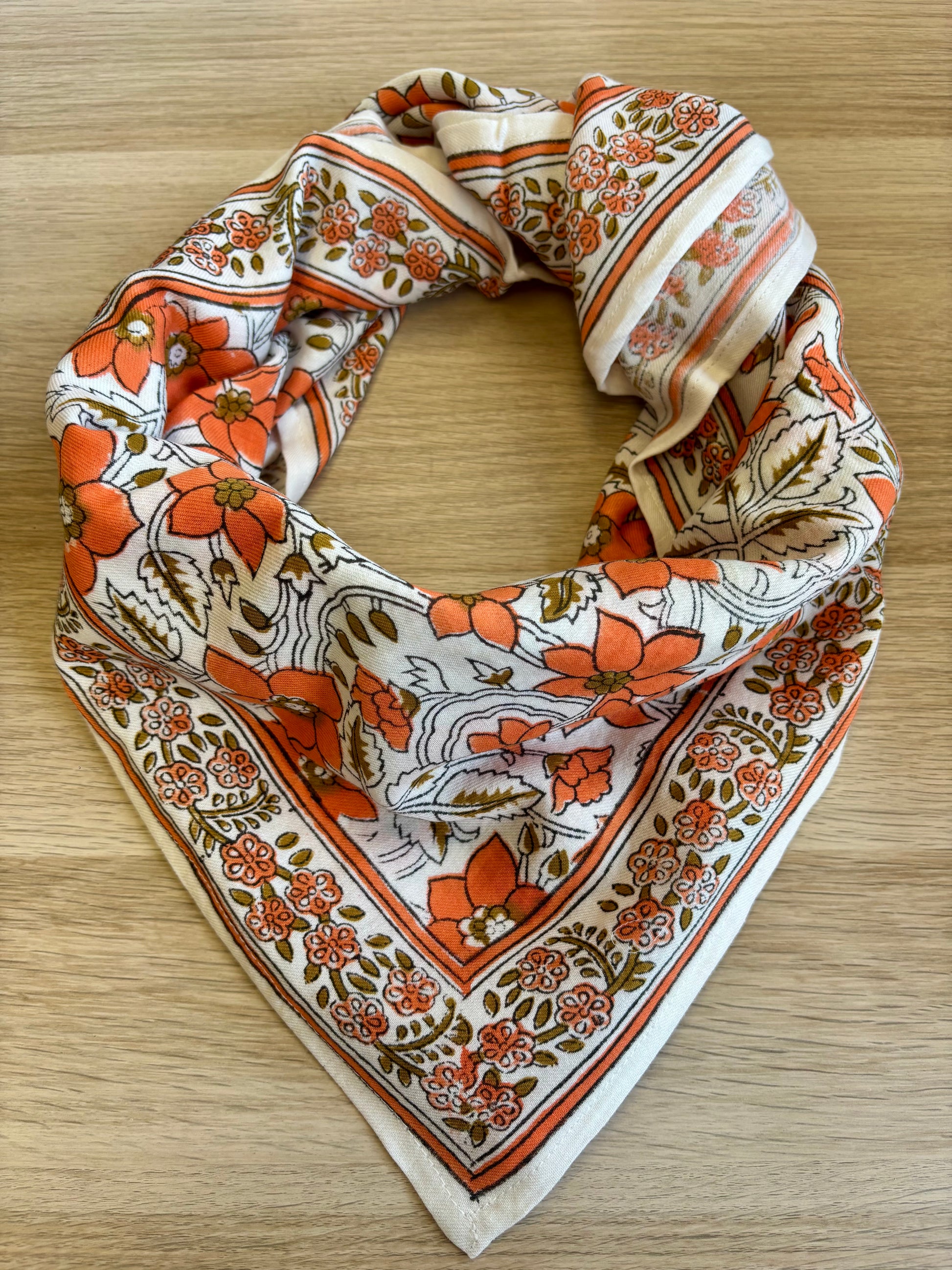Nos foulards sont imprimés à la main à Jaipur avec la technique traditionnelle du block print. Chaque pièce est unique, avec ses petites irrégularités qui font tout son charme. Comme chaque collection est réalisée en série limitée, les couleurs varient d’une production à l’autre : votre duo est vraiment exclusif !