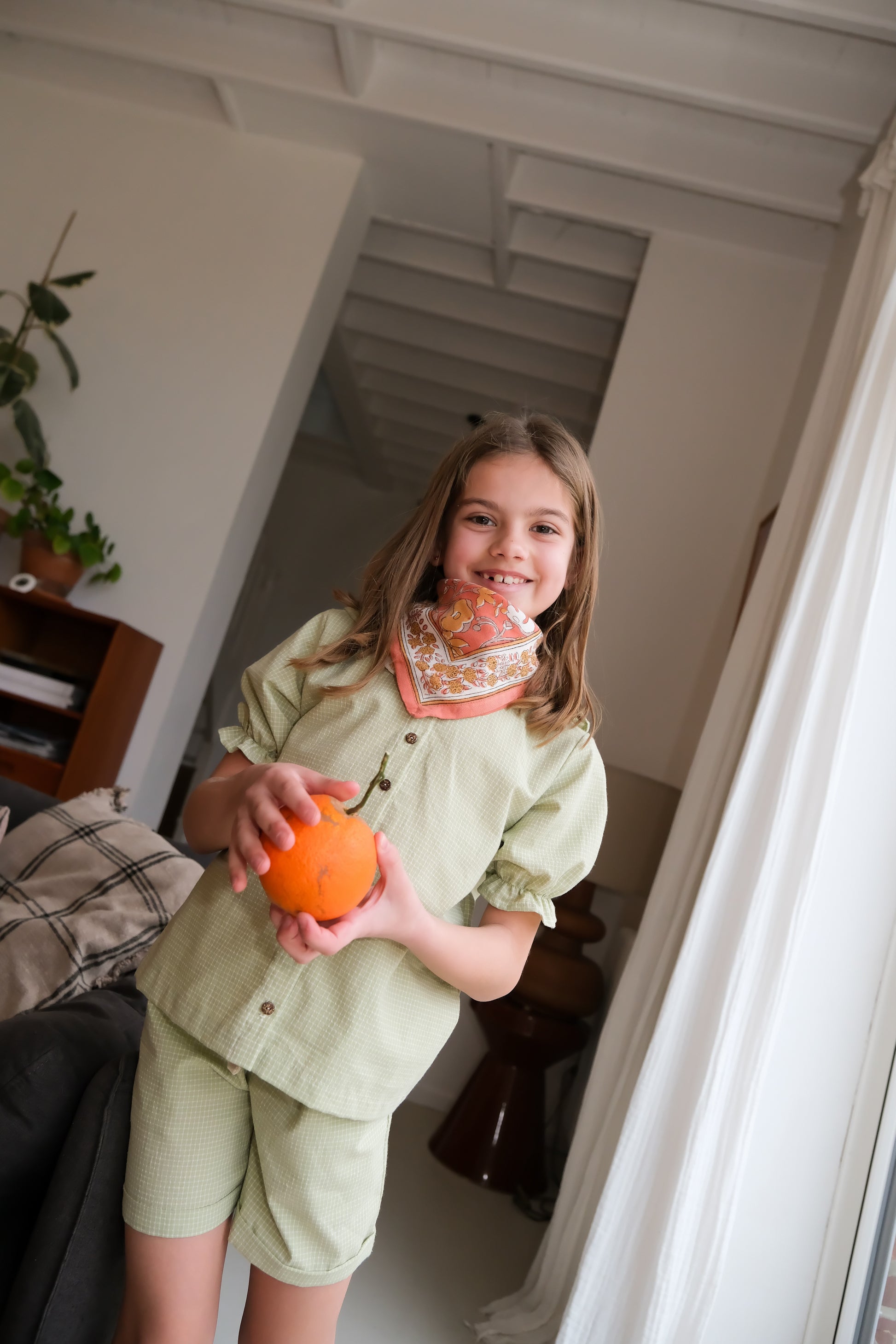 Un foulard pour maman (100x100 cm) et un foulard pour enfant (50x50 cm) : l’accessoire idéal pour créer des looks matchy-matchy plein de style et de tendresse.