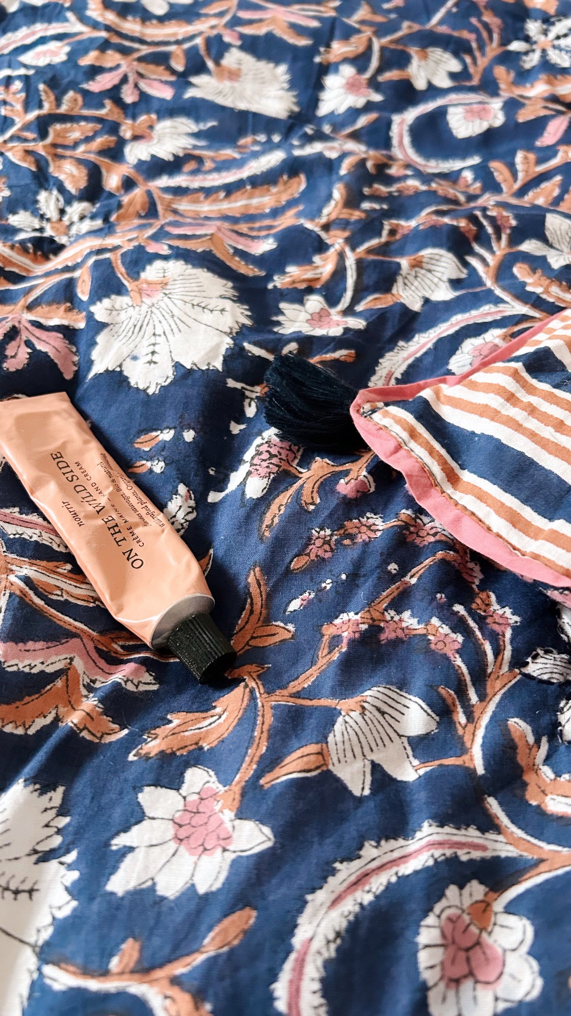 Nos créations prennent ensuite vie dans nos ateliers partenaires en Inde, certifiés et reconnus pour leur savoir-faire ancestral. Là-bas, des artisans perpétuent l’art du blockprint, une technique traditionnelle d’impression au tampon de bois sculpté à la main. Chaque geste, précis et patient, confère au tissu un caractère singulier, empreint d’authenticité et d’irrégularités précieuses qui rendent chaque pièce unique.