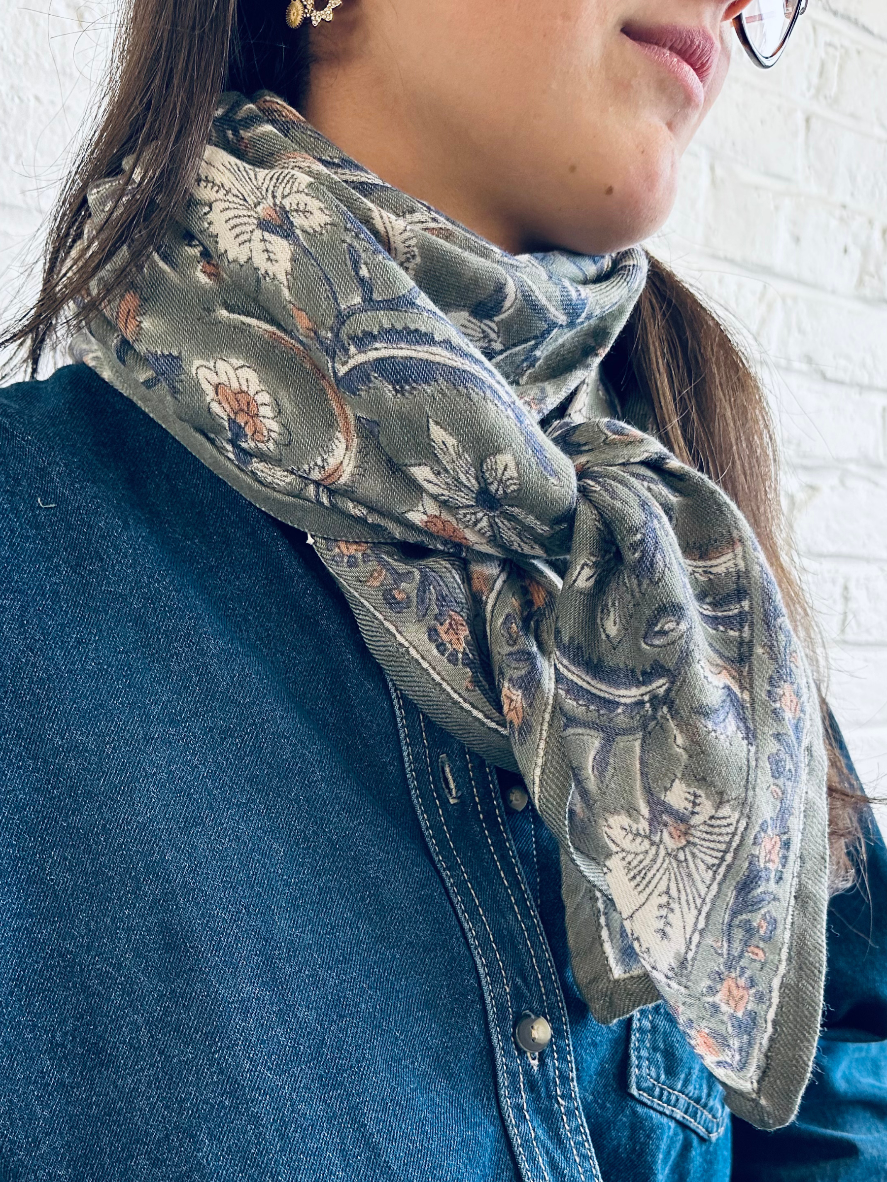 Un foulard en laine fabriqué dans un atelier familial en Inde, pensé pour vous accompagner tout l’hiver.