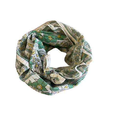 Imprimés à la main à Jaipur avec la technique traditionnelle du block print, chaque foulard se distingue par ses nuances uniques obtenues grâce à des pigments naturels. De petites irrégularités peuvent apparaître, signe de leur fabrication artisanale et de leur authenticité.