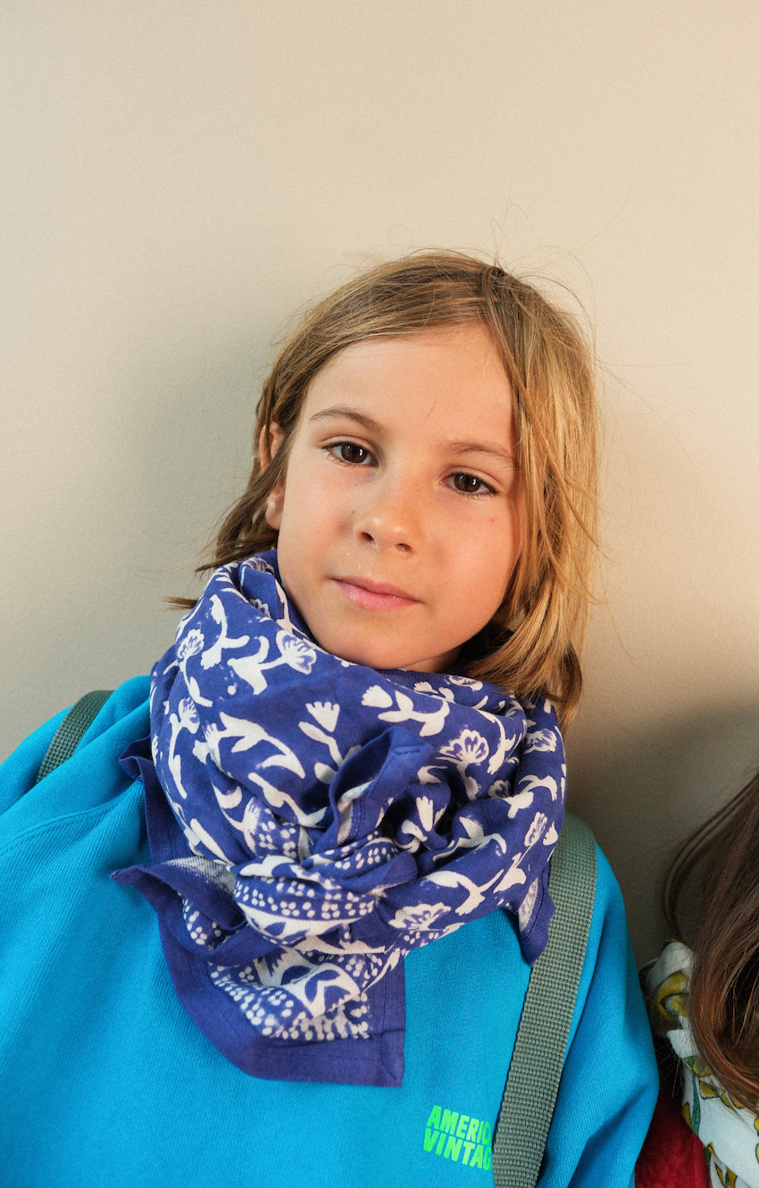 Imprimés à la main à Jaipur avec la technique traditionnelle du block print, chaque foulard se distingue par ses nuances uniques obtenues grâce à des pigments naturels. De petites irrégularités peuvent apparaître, signe de leur fabrication artisanale et de leur authenticité.