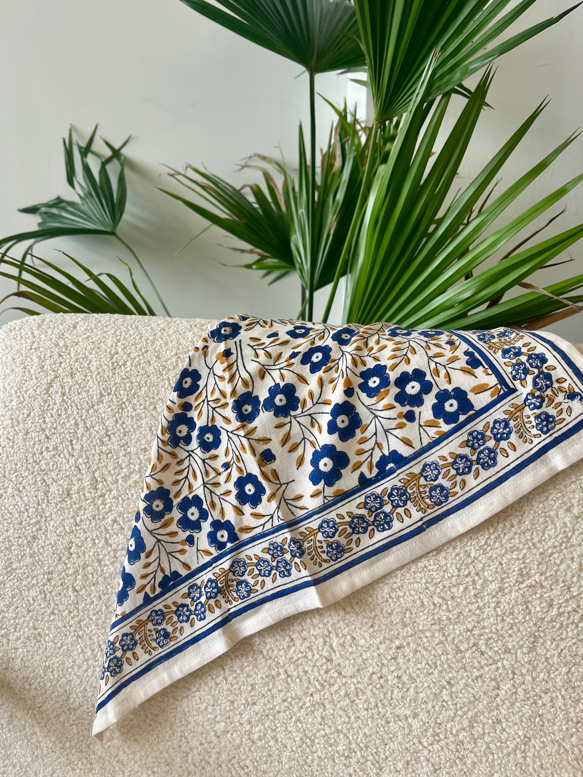 Nos créations prennent ensuite vie dans nos ateliers partenaires en Inde, certifiés et reconnus pour leur savoir-faire ancestral. Là-bas, des artisans perpétuent l’art du blockprint, une technique traditionnelle d’impression au tampon de bois sculpté à la main. Chaque geste, précis et patient, confère au tissu un caractère singulier, empreint d’authenticité et d’irrégularités précieuses qui rendent chaque pièce unique.