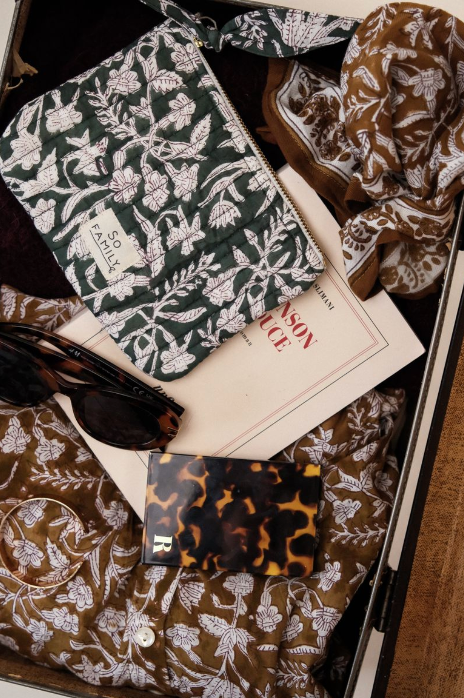 Compacte mais pratique, elle accueille tous vos essentiels : maquillage, clés, papiers ou petits trésors. Son motif fleuri et son tissu résistant apportent une touche fun à votre sac ou votre valise.