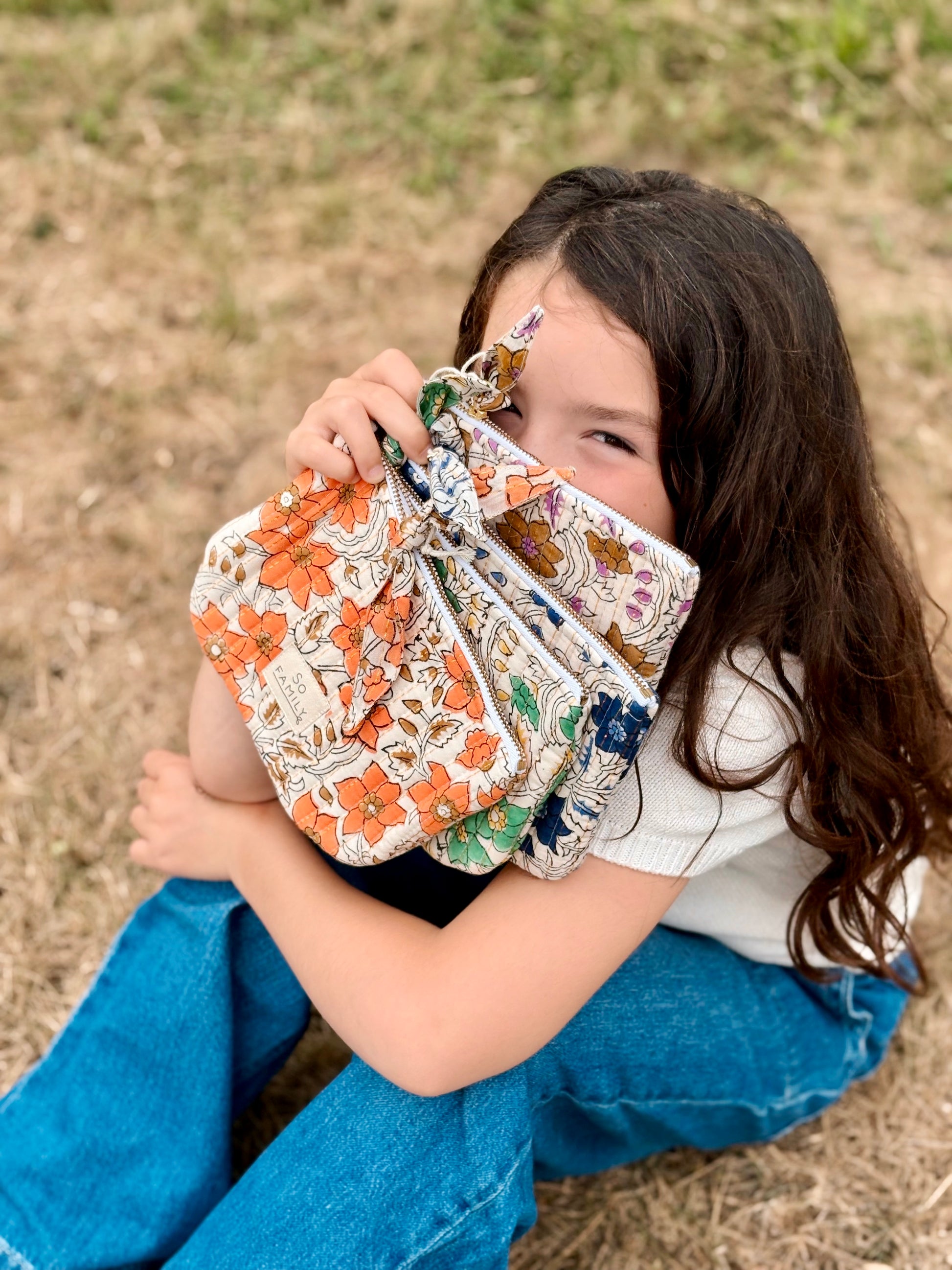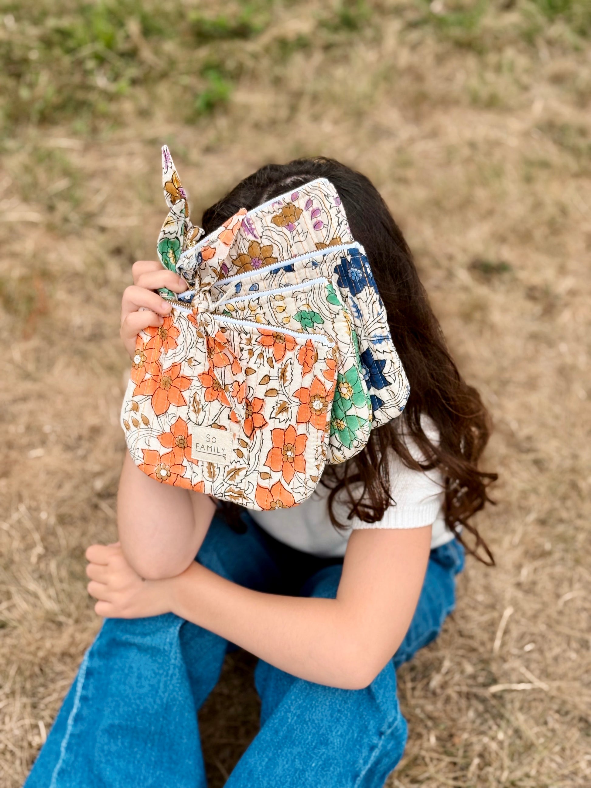 Compacte mais pratique, elle accueille tous vos essentiels : maquillage, clés, papiers ou petits trésors. Son motif fleuri et son tissu résistant apportent une touche fun à votre sac ou votre valise.